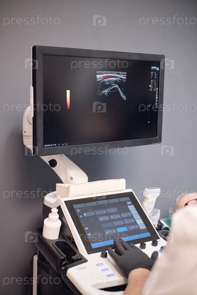 Профессионал, выполняющий сосудистую ультразвуковую медицинскую экспертизу