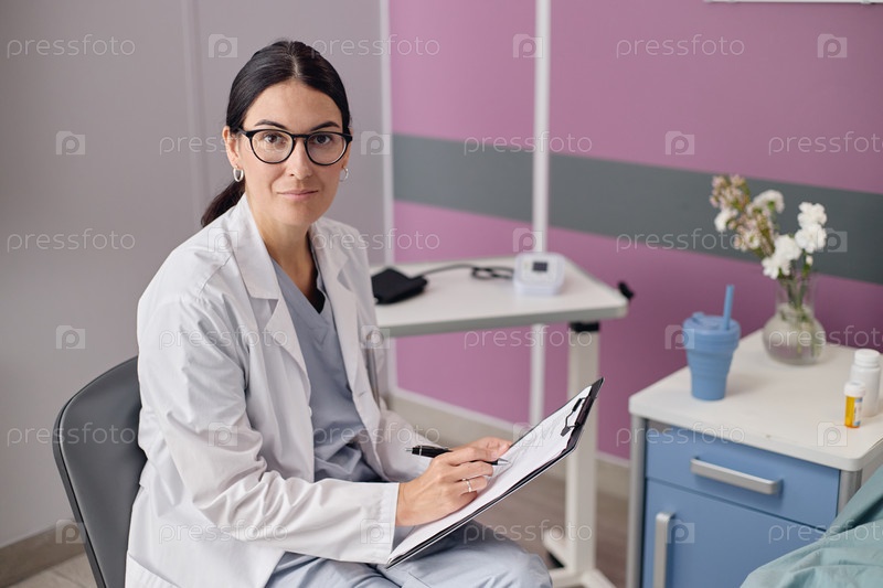 Портрет молодой взрослой женщины Доктор пишет записки в сосудистом центре