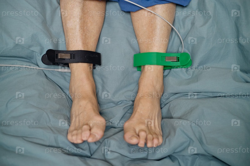 Пожилая женщина, проходящая процедуру сосудистого мониторинга в клинике