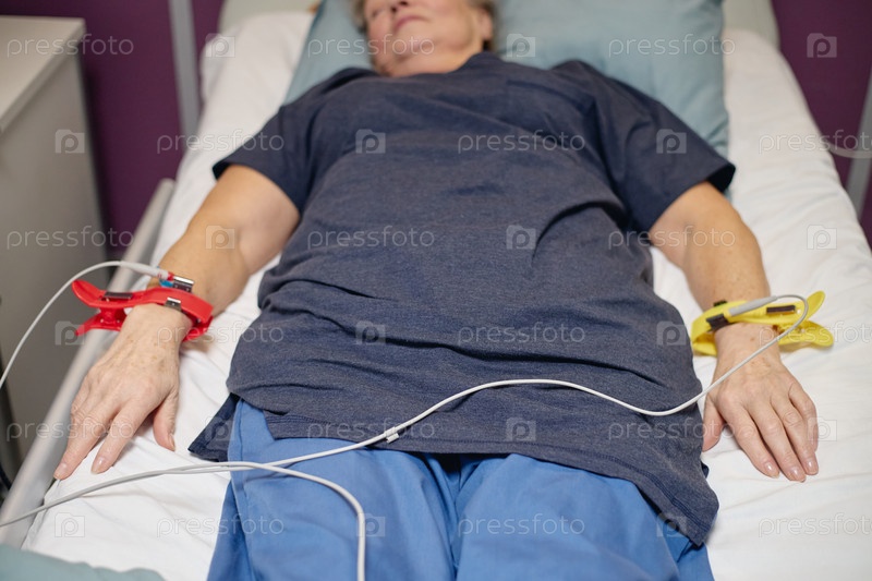 Женщина, проходящая сосудистую диагностическую процедуру в клинике Senior Bed