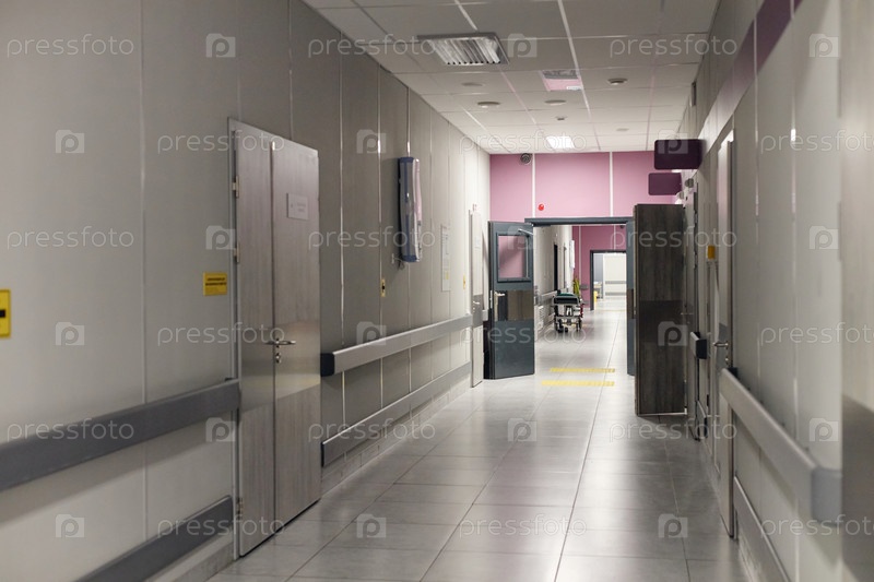Пустой коридор больницы, ведущий к сосудистому центру в дневное время