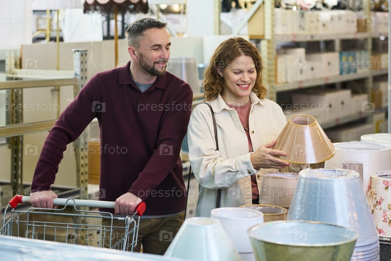 Молодая взрослая пара покупает лампочки в магазине домашних товаров