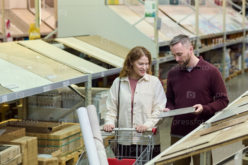 Молодая взрослая пара покупает строительные материалы в магазине оборудования