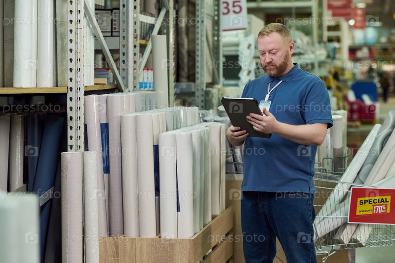 Человек, использующий цифровой планшет во время работы на складе