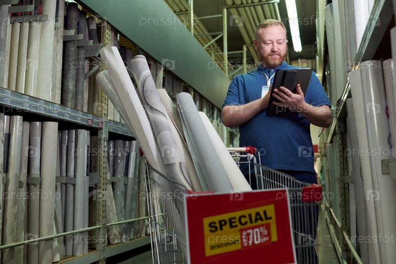 Человек, использующий цифровой планшет во время покупок в магазине оборудования