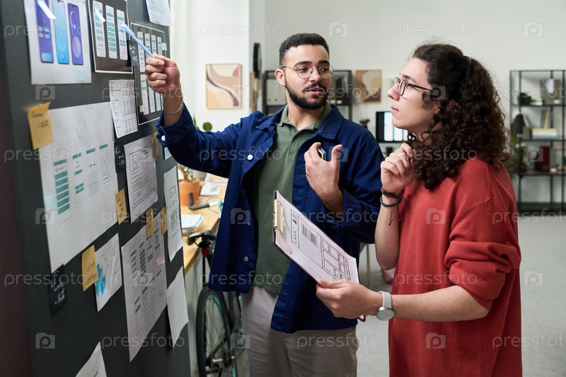 Молодые взрослые многоэтнические коллеги, сотрудничающие в планировании проектов в офисе