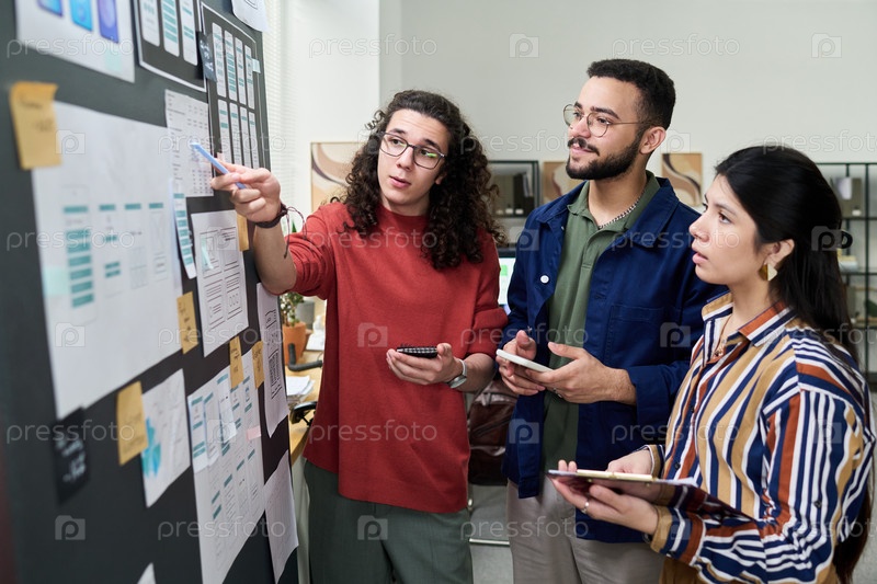 Мультиэтнические молодые взрослые сотрудничают над планированием проектов в современном офисе