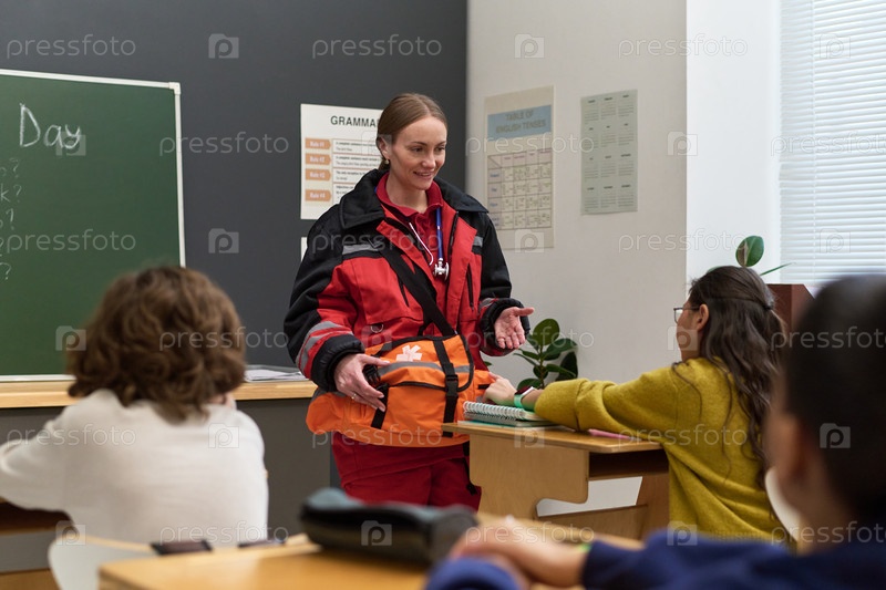 Caucasian Young Adult Woman Paramedic Teaching Школьники в классе