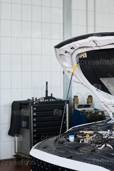 Автомобильный капот в профессиональной автомастерской Open