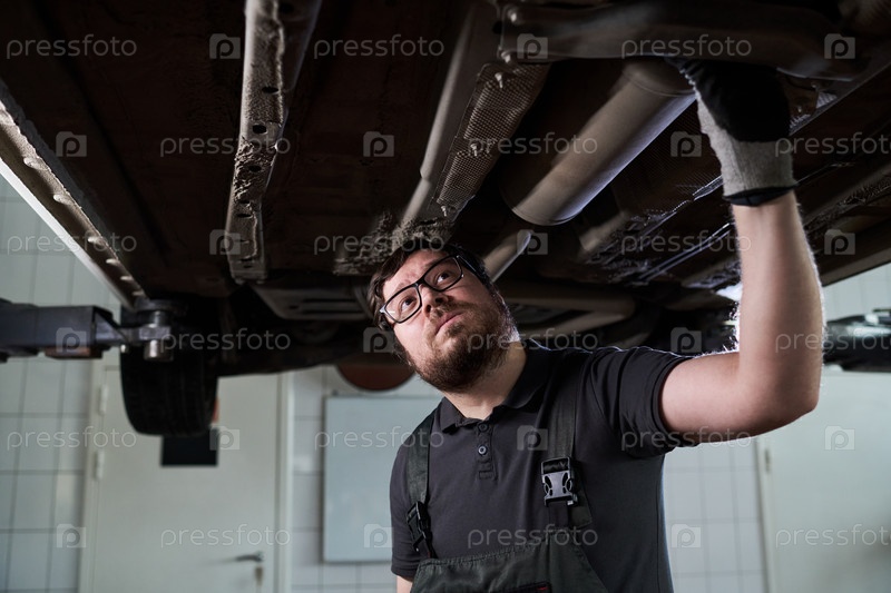 Портрет белого мужчины средних лет, осматривающего подъезд автомобиля