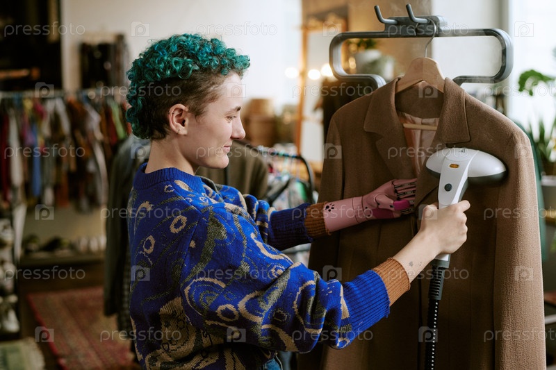 Молодая взрослая кавказская женщина с протезированной рукой, парящая пальто второй руки