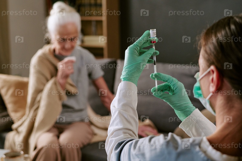 Кавказская женщина получает прививку от старшего медицинского работника