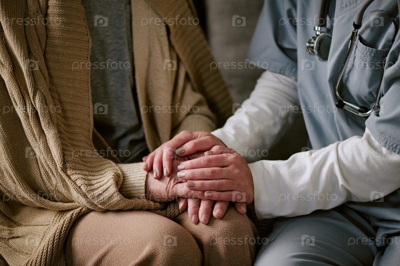 Медсестра утешает старшую женщину в помещении