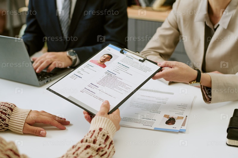 Женщина, интервьюирующая молодого взрослого мужчину во время процесса найма на работу