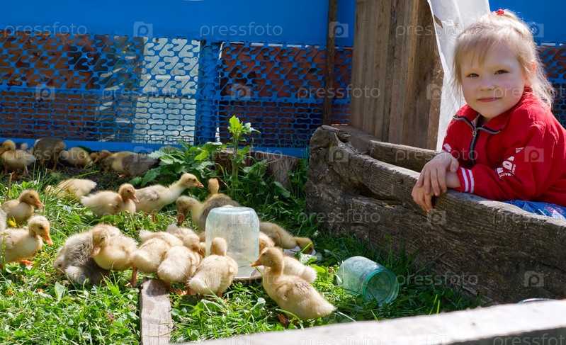 Маленькая девочка рядом с утятами