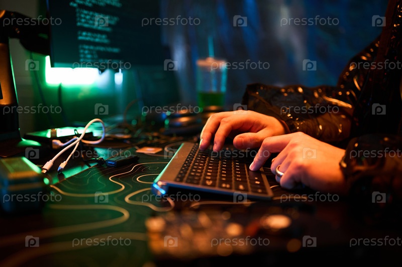 Руки человека, печатающего код на клавиатуре во время взлома компьютерной системы