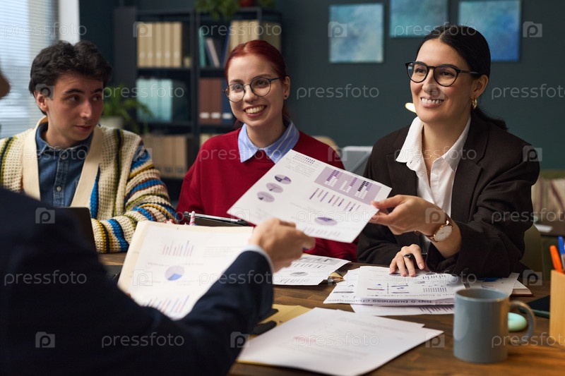 Команда молодых взрослых сотрудничает во время деловой встречи в помещении