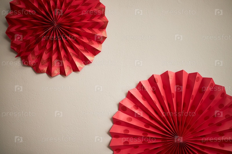 Красные бумажные украшения висят на стене, отмечая праздничную традицию Тет