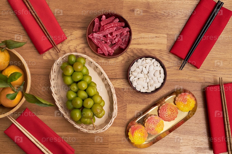 Традиционный праздничный стол Тета с выставкой праздничных сладостей и фруктов