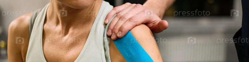 Женщина среднего возраста, получающая лечение плечевой реабилитационной терапии