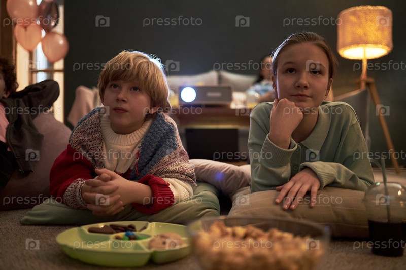 Белый мальчик и белая девочка смотрят фильм на закрытой вечеринке