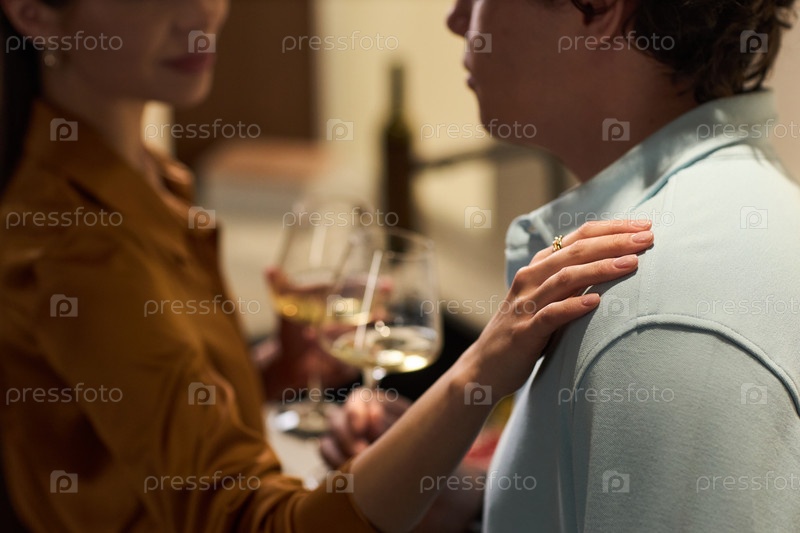 Молодой человек утешается девушкой, держа винные бокалы