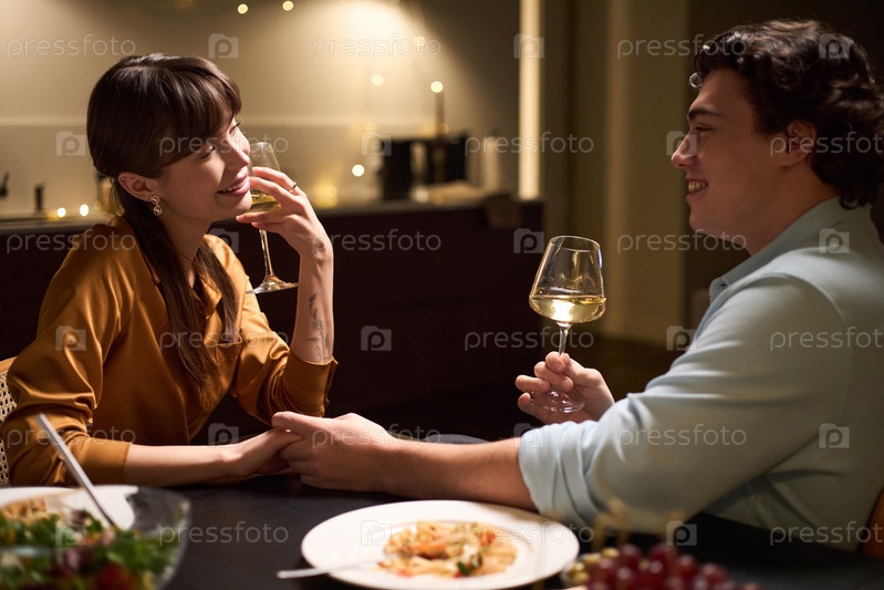 Молодая женщина и молодой человек наслаждаются романтическим ужином вместе