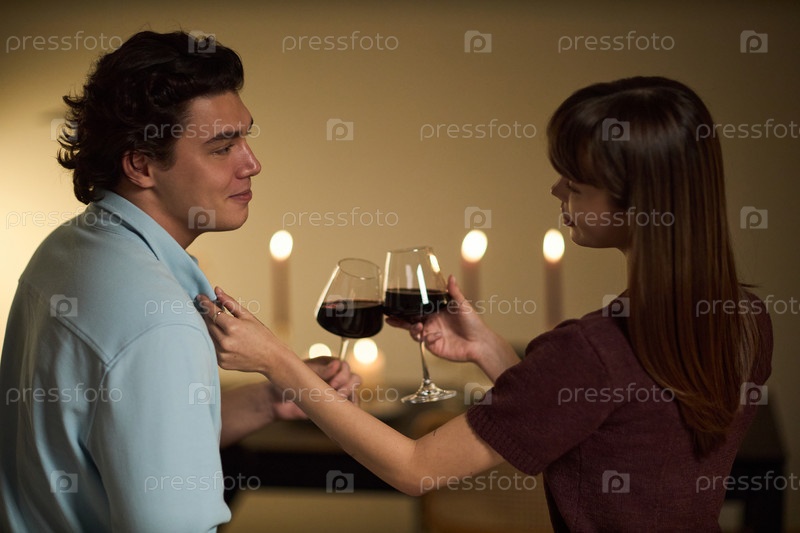 Молодой человек утешается молодой женщиной, которая делится вином в помещении