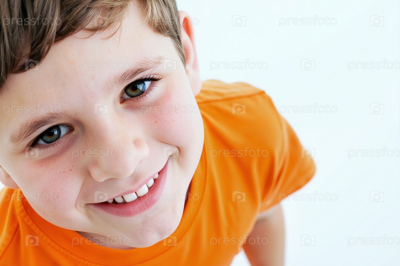 Портрет белого мальчика, улыбающегося и смотрящего в камеру