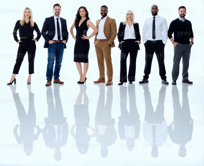 Мультиэтнические взрослые стоят в очереди и уверенно позируют в студии