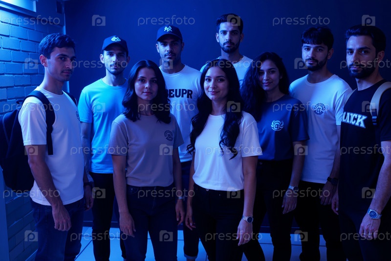 Группа молодых взрослых мультиэтнических мужчин и женщин, стоящих вместе в помещении