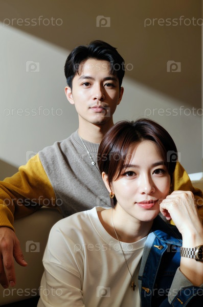 Портрет молодого взрослого азиатского мужчины и женщины, позирующих вместе в помещении