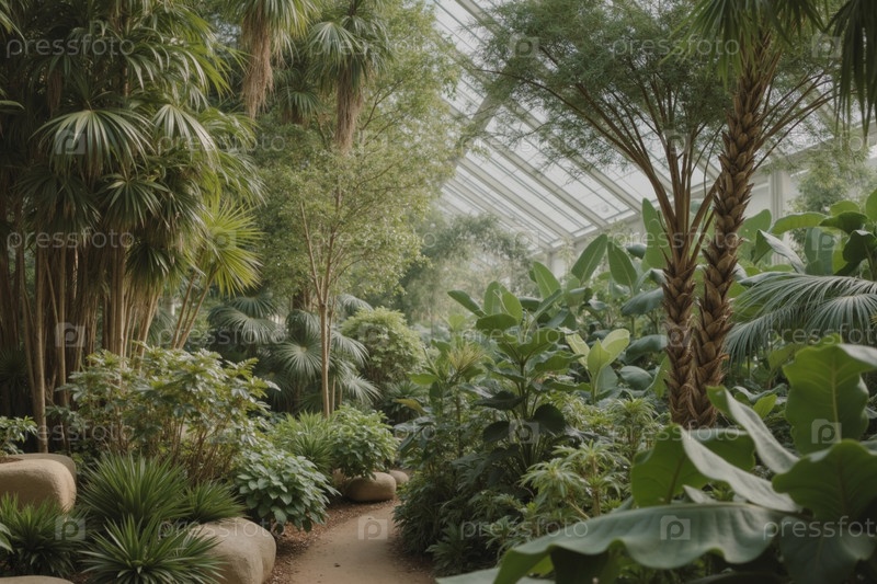 Плодородные тропические растения, процветающие внутри солнечного ботанического сада консерватория