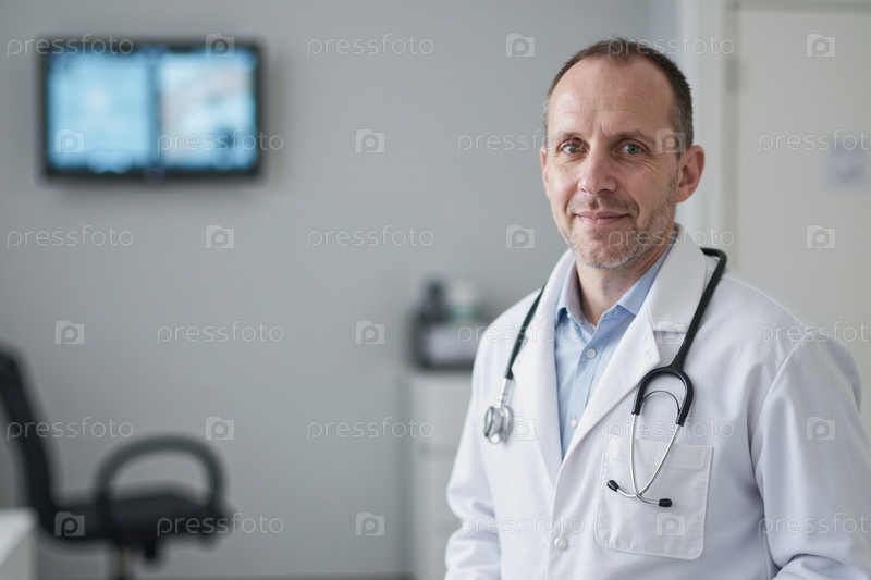 Портрет белого мужчины средних лет Доктор улыбается в медицинском кабинете