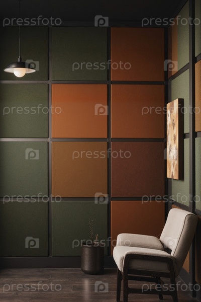 Пустая современная комната с креслом и декоративными стеновыми панелями