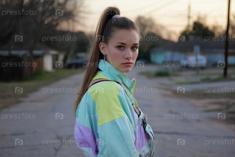 Портрет белокожей девочки-подростка, стоящей на улице и смотрящей в камеру