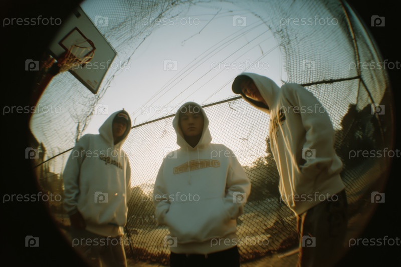 Группа мальчиков-подростков, стоящих на открытом воздухе возле баскетбольного корта в Санрайзе