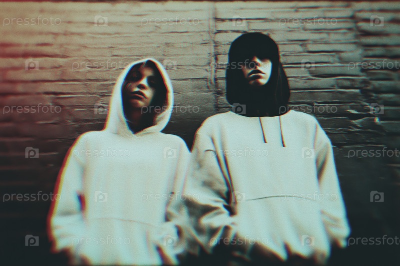 Кавказская девочка-подросток и чернокожая девушка-подросток стоят на кирпичной стене