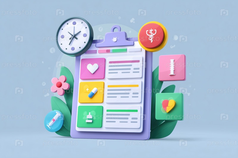 Медицинские иконки, окружающие щит иллюстрируют концепцию планирования здравоохранения
