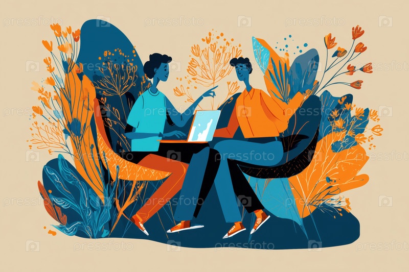 Молодые взрослые многоэтнические коллеги, сотрудничающие на ноутбуке в творческой обстановке