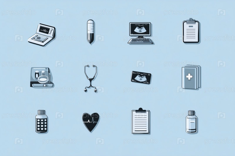 Иконы медицинского оборудования и здравоохранения, представляющие современные диагностические инструменты