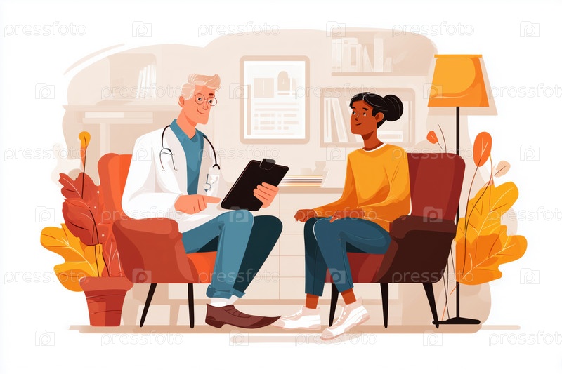 Кавказский мужчина среднего возраста Врач-консультант Молодой взрослый Черная женщина Пациент