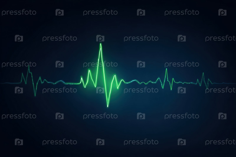 Зеленая линия электрокардиограммы пульсирует на темном фоне в медицинской иллюстрации