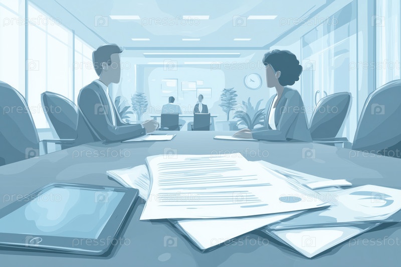 Белый мужчина и чернокожая женщина обсуждают документы во время деловой встречи