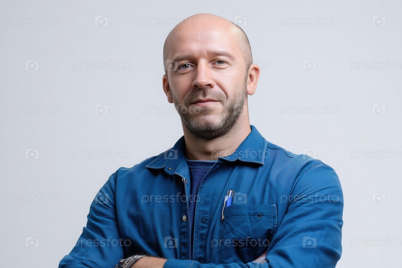 Портрет белого мужчины средних лет, улыбающегося с перекрещенными руками