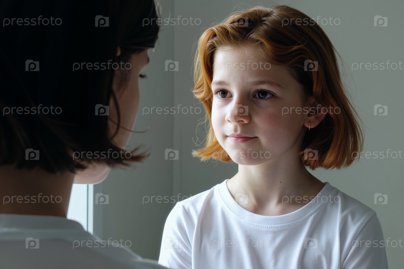 Портрет девушки, смотрящей на мать в помещении