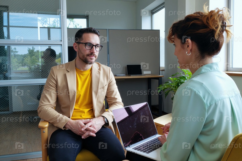 Молодой человек слушает во время собеседования с женщиной