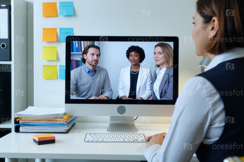 Женщина, посещающая онлайн-встречу с различными молодыми коллегами