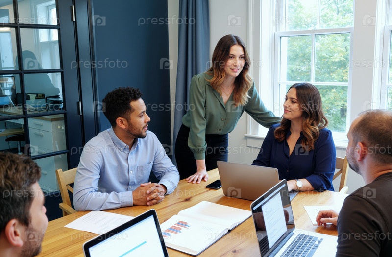 Мультиэтнические молодые люди сотрудничают во время деловой встречи в офисе