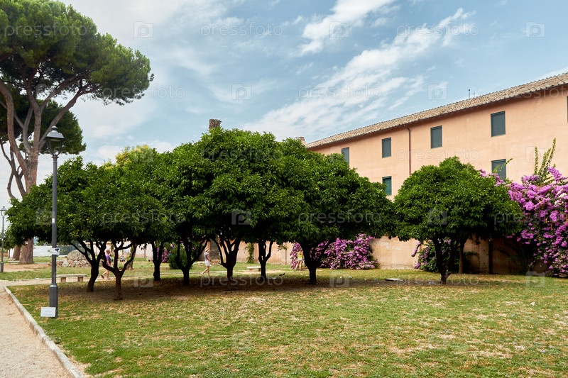 Зеленый оазис у старинного здания